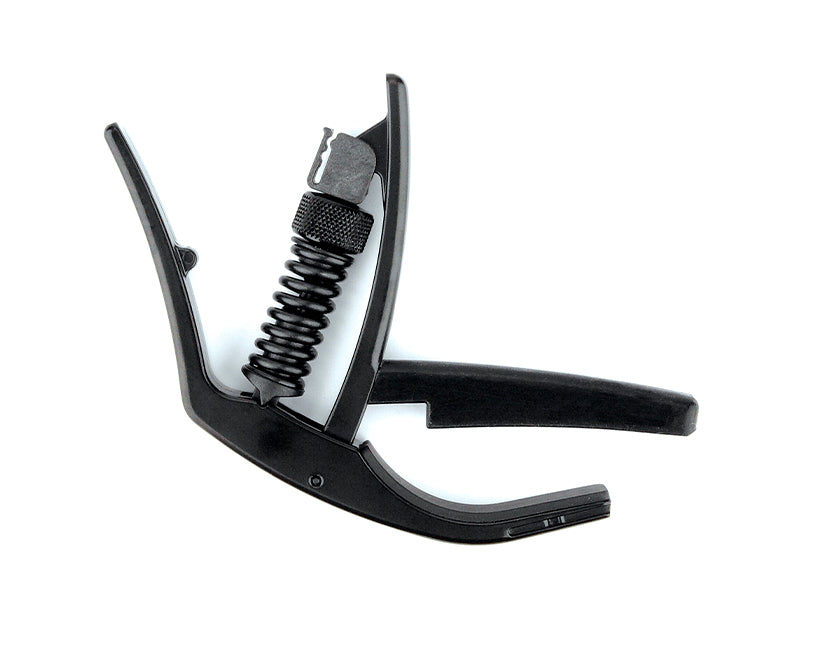 Planet Waves Capo Drop Tune Musta on huippulaadukas kapo, joka on suunniteltu erityisesti teräskielisille akustisille ja sähkökitaroille. Sen innovatiivinen Tri-Action-mekanismi takaa tasaisen puristuksen ilman kielten epätasaista painetta, mikä parantaa soinnin kirkkautta ja vireen pysyvyyttä.