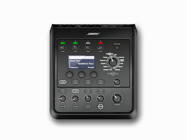 Bose T4S ToneMatch® -mikseri on kompakti ja tehokas miksausratkaisu muusikoille, esiintyjille ja ääniteknikoille, jotka tarvitsevat korkealaatuista äänenhallintaa keikoilla, harjoituksissa ja pienissä tapahtumissa. Neljä itsenäistä kanavaa, laadukkaat etuasteet ja Bose® ToneMatch® -prosessointi takaavat luonnollisen ja selkeän äänentoiston niin laululle kuin soittimille. Mikseri sopii erityisesti akustisille esiintyjille, duoeille ja pienille kokoonpanoille, mutta se toimii loistavasti myös monipuolisissa live- ja studiotilanteissa.