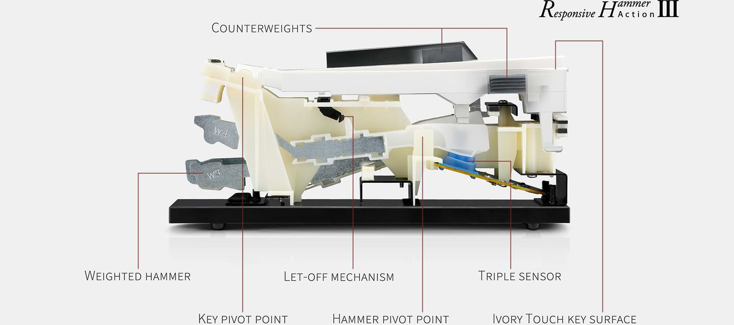 Responsive Hammer III -kosketinkoneisto hyödyntää tarkkaa kolmen sensorin tunnistusjärjestelmää, joka parantaa tuntuman realistisuutta.
