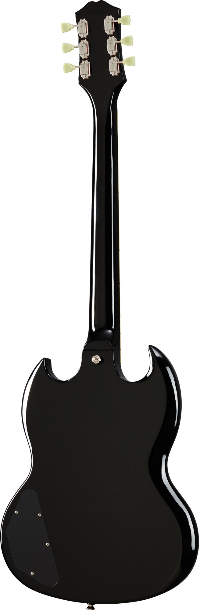 Epiphone SG Standard Ebony on klassisen SG-mallin inspiroima sähkökitara, joka yhdistää ikonisen muotoilun ja monipuolisen soundin. Kiinteä mahonkirunko tuottaa lämpimän ja täyteläisen soinnin, joka soveltuu erinomaisesti rockiin, bluesiin ja metalliin. Yksinkertainen, mutta tyylikkään musta Ebony-viimeistely korostaa kitaran voimakasta luonnetta ja legendaarista ulkonäköä.