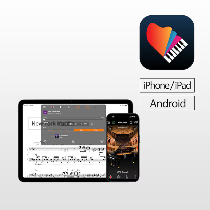 Yamaha Smart Pianist on sovellus, joka tekee pianon ohjaamisesta ja opiskelusta helppoa. Sen avulla voit säätää ääniä ja toimintoja suoraan älylaitteeltasi, sekä näyttää nuotteja ja opettaa kappaleita interaktiivisesti.