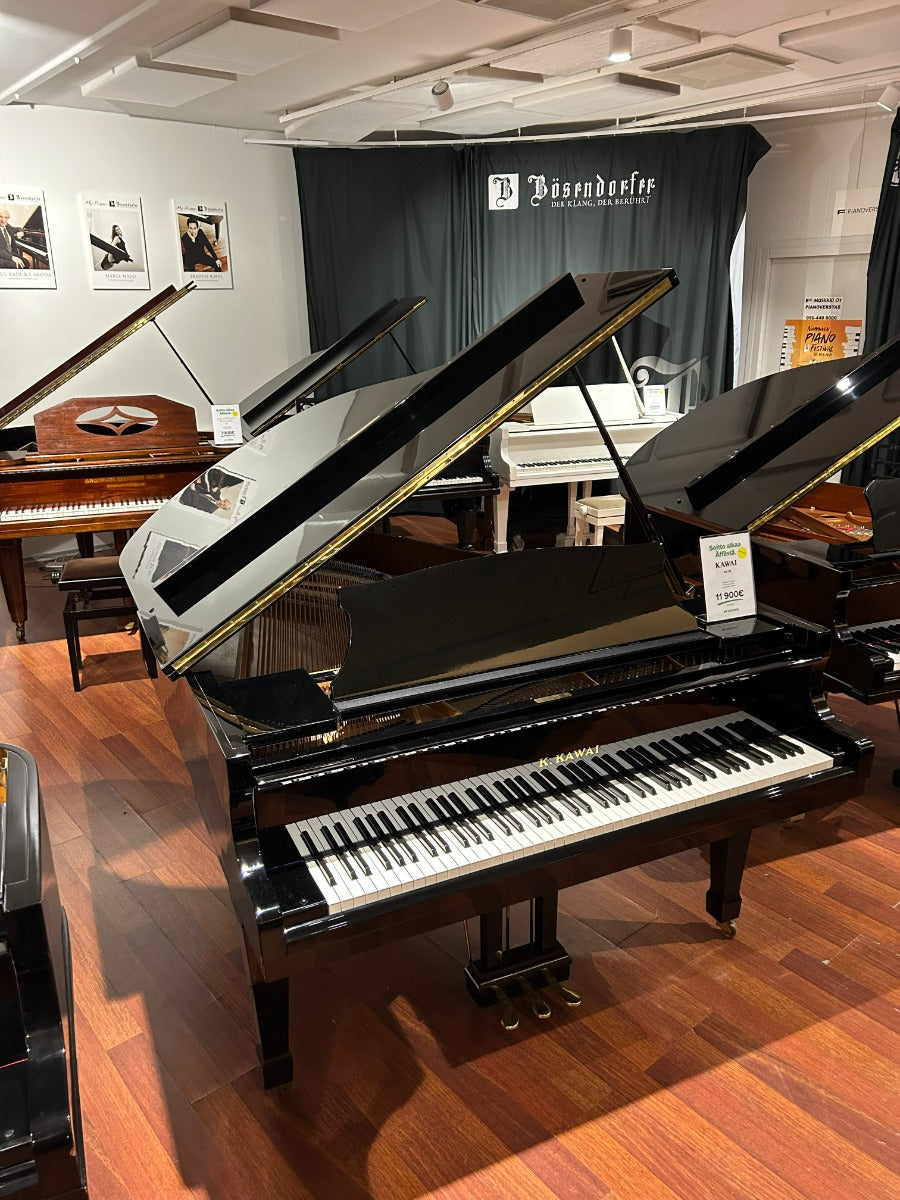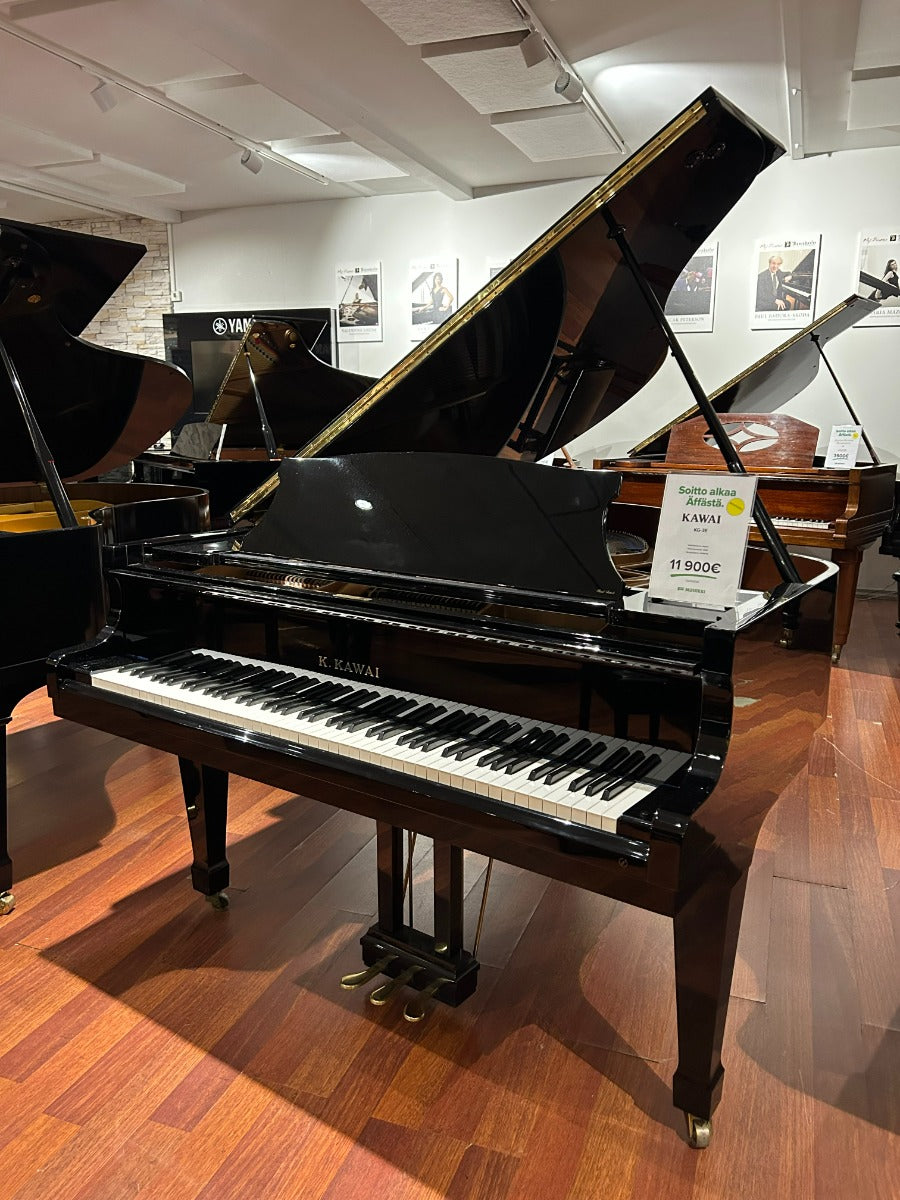 Yksityiskäytöstä hyväkuntoinen ja juuri F-Musiikin pianoverstaalla huollettu Kawain flyygeli. Soittimelle on tehty koskettimiston huolto ja pintojen kiillotus.