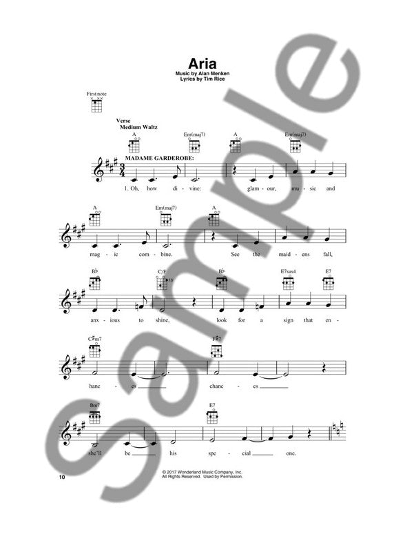 Beauty and the Beast - Ukulele -nuottikirja tarjoaa kokoelman upeita kappaleita Disneyn rakastetusta Kaunotar ja hirviö -elokuvasta ukulelesovituksina. Kirja sisältää niin klassisia kuin uudempia sävelmiä, kuten "Be Our Guest", "Beauty and the Beast" ja "Evermore". Sovitukset sisältävät melodiat, soinnut ja sanat, joten ne soveltuvat erinomaisesti sekä soolo- että säestyskäyttöön.