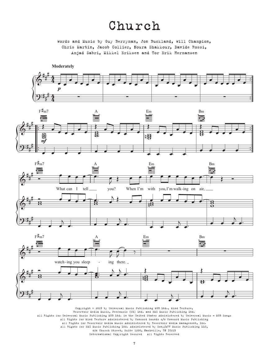 Coldplayn albumiin "Everyday Life" perustuva nuottikirja sisältää kaikki levyn kappaleet sovitettuna pianolle, laululle ja kitaralle. Kirja soveltuu hyvin niin itseopiskeleville muusikoille kuin musiikinopetukseenkin. Selkeät nuotit, sointumerkit ja sanoitukset tekevät harjoittelusta sujuvaa.