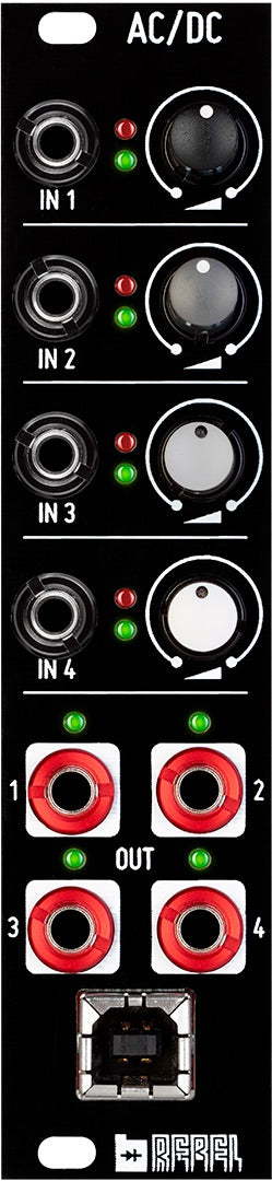 AC/DC on tasavirtaparitettu classcompliant USB-audio-interface Eurorack-formaatissa. Näppärä 6HP-koko tekee siitä täydellisen työkalun live-käyttöön. Moduuli pohjautuu Rebel Technologyn OWL-alustalle, ja mahdollistaa sekä audio- että CV-signaalien lähettämisen ja vastaanottamisen (16bit/48kHz). Siihen voi myös ladata Rebel-kirjaston patcheja. AC/DC on yhteensopiva kaikkien tunnettujen DAW-ohjelmien ja CV-generaattorien kanssa, ja se toimii myös iOS-applikaatioiden kanssa (sekä audio että CV).