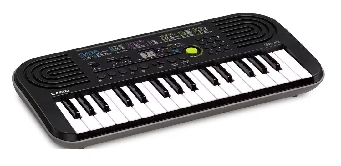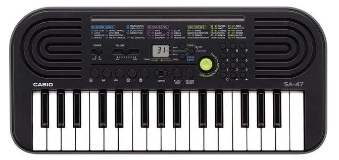 Casio SA-47 on kompakti ja kevyt digitaalinen kosketinsoitin, joka sopii erinomaisesti lapsille ja aloittelijoille. Soittimessa on 32 mini-kosketinta, jotka tarjoavat miellyttävän soittotuntuman pienille käsille. SA-47 sisältää 100 erilaista soitinääntä, 50 rytmikuviota ja 10 harjoituskappaletta, joiden avulla käyttäjä voi oppia ja kehittää musiikillisia taitojaan. Digitaalinen äänimoottori mahdollistaa monipuolisen soundinmuokkauksen, ja 8 nuotin polyfonia mahdollistaa sointujen ja melodioiden yhtäaikaisen soiton ilman äänen katkeamista.