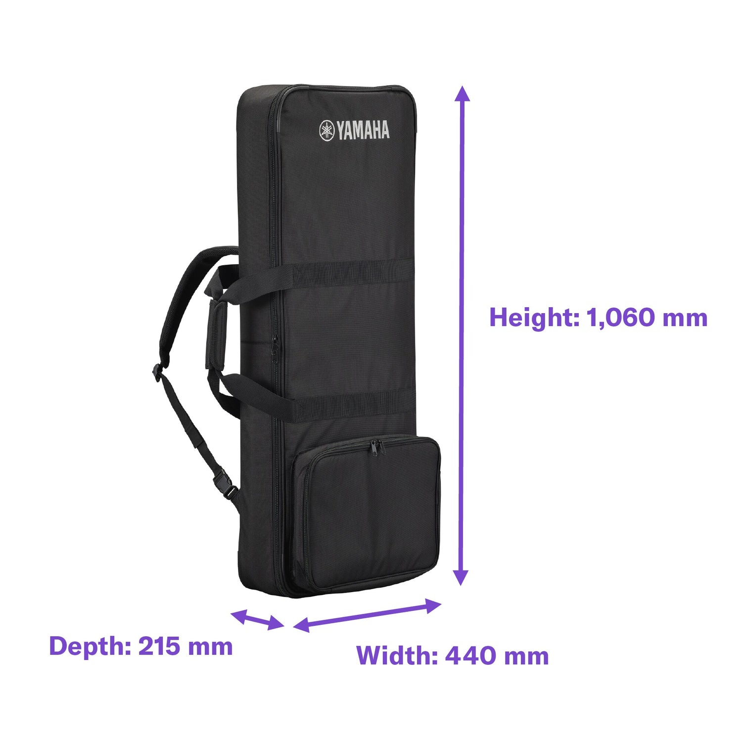 Pehmeä kantolaukku useille Yamahan 61-koskettimisille kannettaville koskettimistoille.