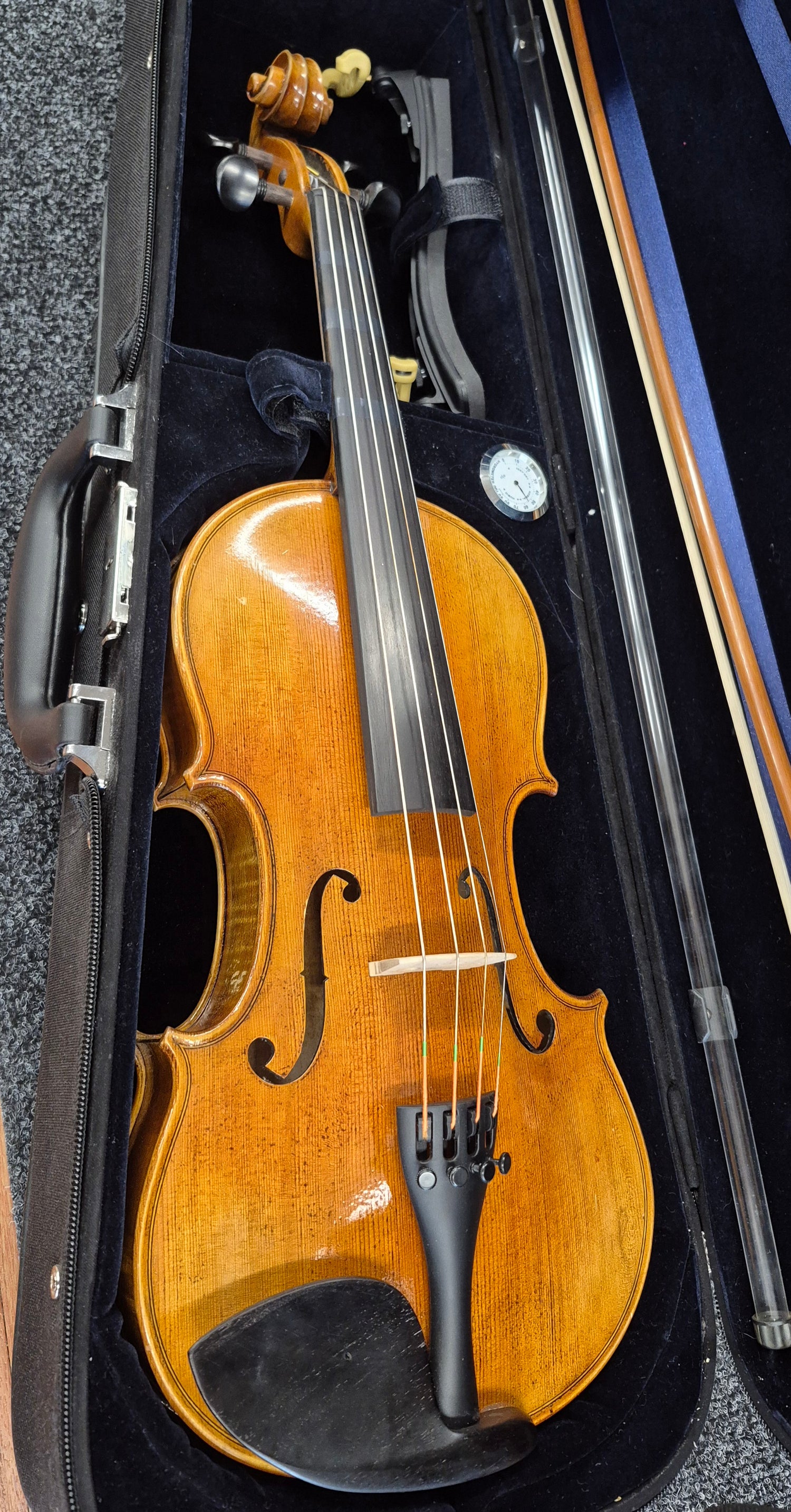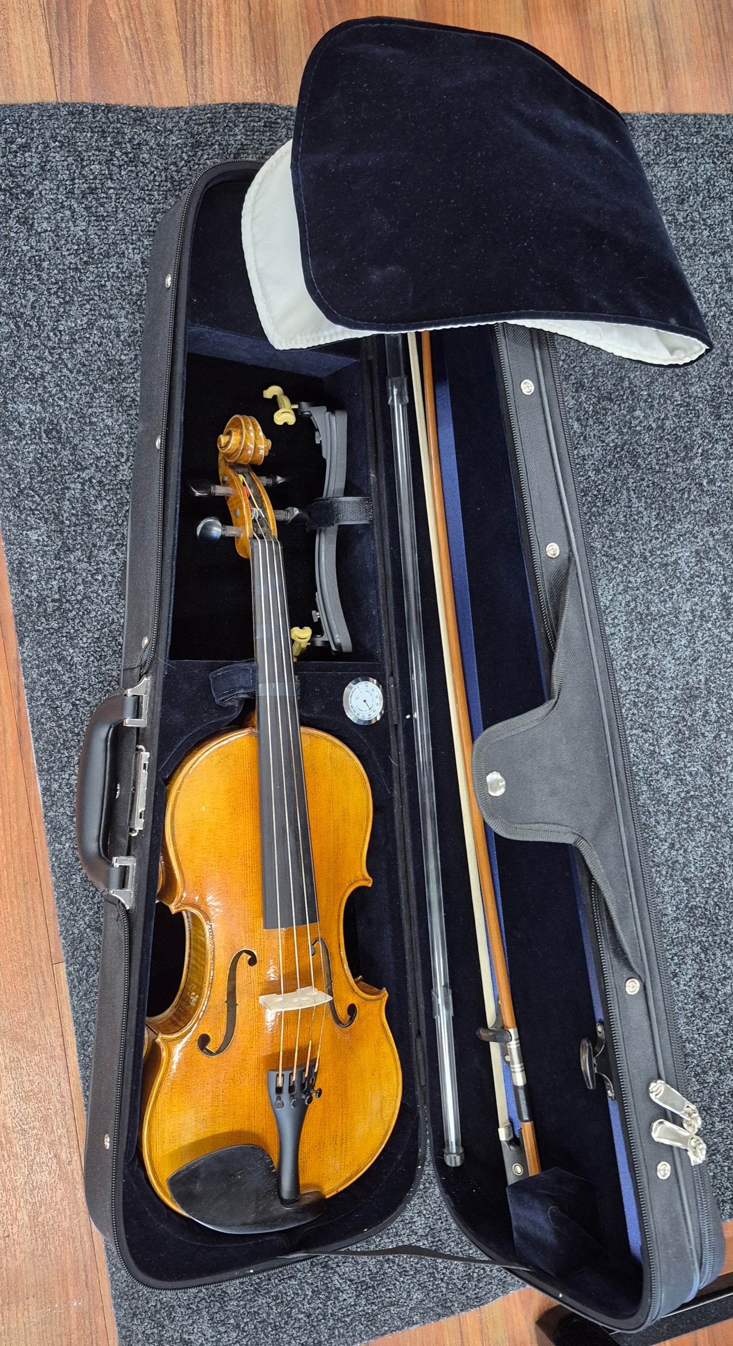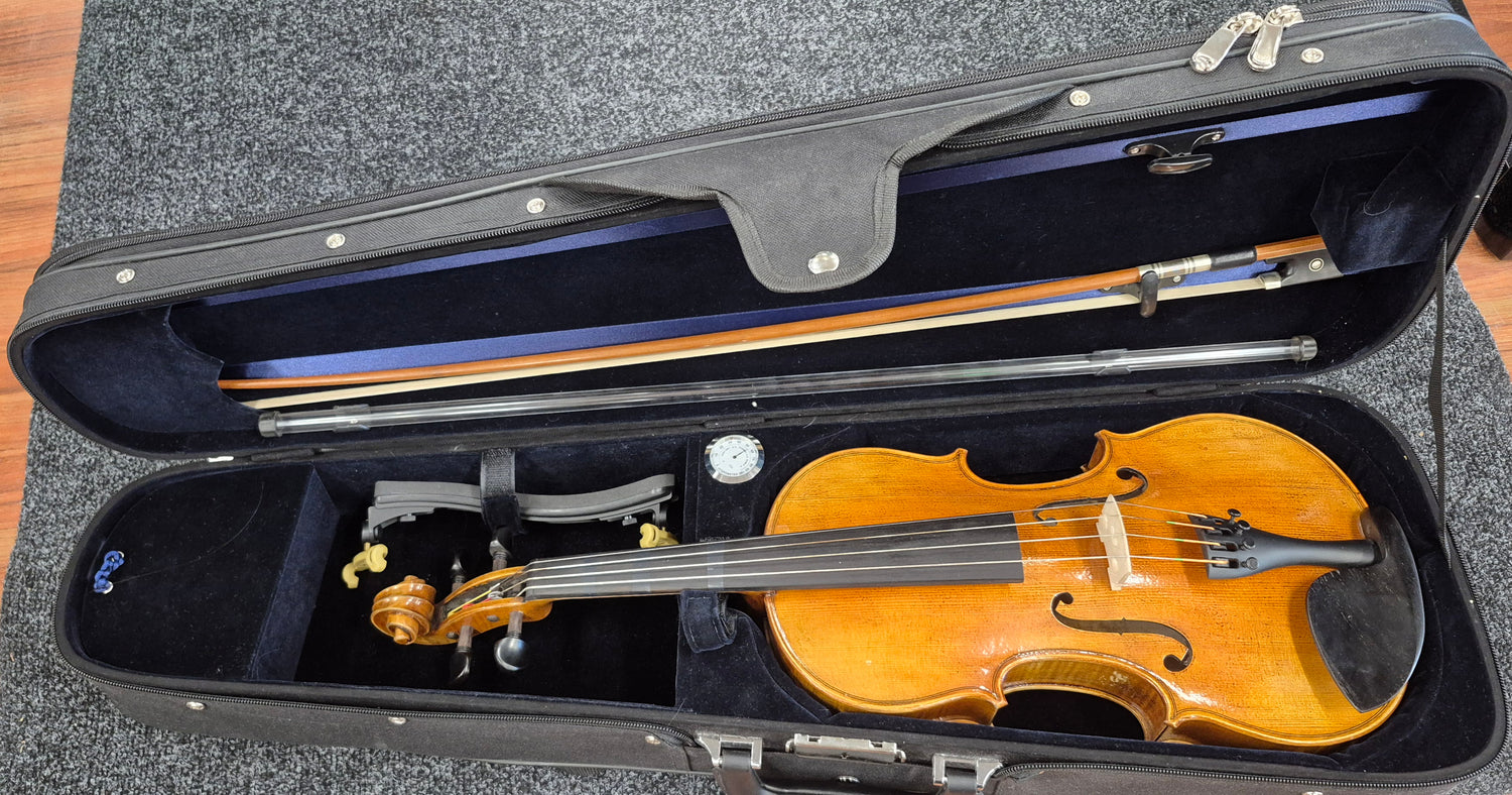 Hyväkuntoinen, 14 tuuman alttoviulusarja. Mukana viulunmuotoinen kotelo, jousi ja Kun-olkatuki.