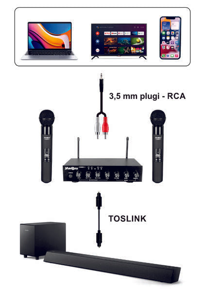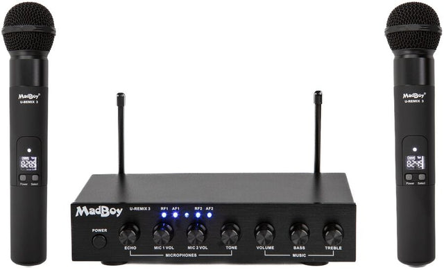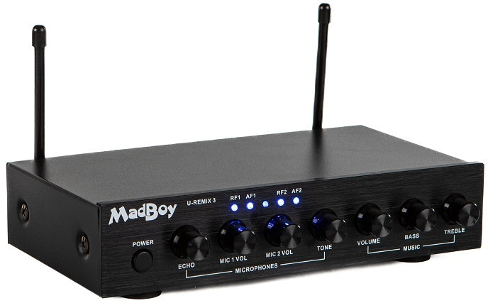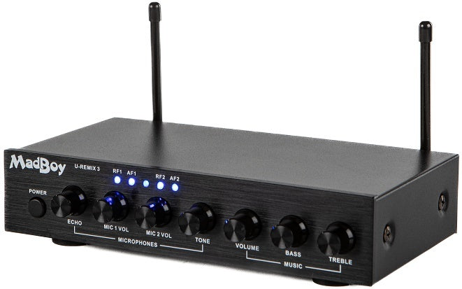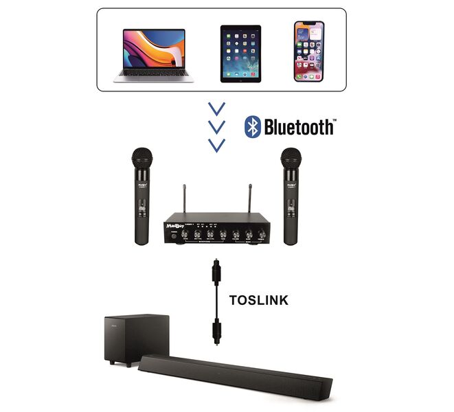 - Karaokemikseri Bluetooth-yhteydellä ja langattomilla mikrofoneilla