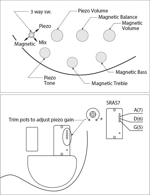 Mikrofonit: AeroSilk Piezo (nauhaton osa), SRAS7 Super J magneettimikki (nauhallinen osa)