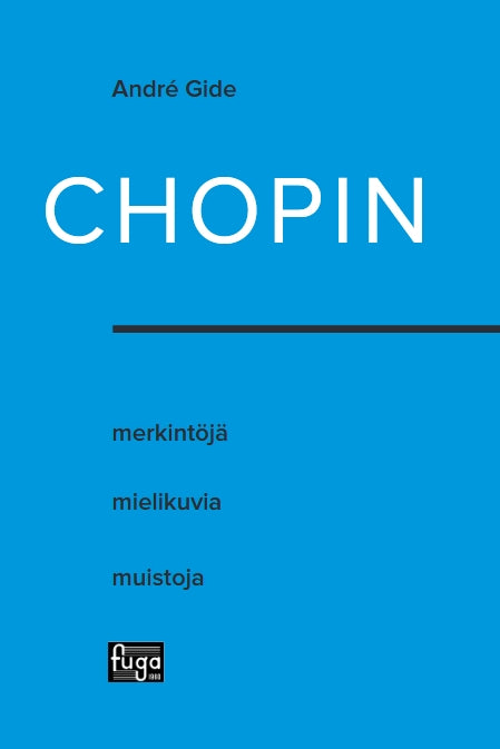 160 sivua. Suomentanut Martti Anhava. Ranskalainen Nobel-kirjailija André Gide (1869-1951) mainitsi viettäneensä Frédéric Chopinin musiikin parissa enemmän aikaa kuin yhdenkään kirjailijan teosten äärellä. Gide oli etevä ja intohimoinen harrastelijapianisti, joka kaavaili lähes koko uransa ajan kirjaa Chopinin ja Robert Schumannin pianomusiikista: Schumann jäi hänen mielessään kuitenkin pian Chopinin varjoon, jonka musiikkia hän vertasi keskittyneisyydeltään ja teholtaan Charles Baudelairen runouteen.