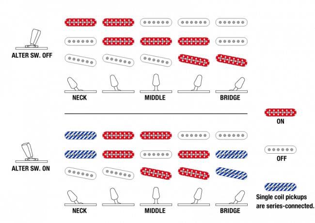 Kitarassa on kolme passiivista Essentials (S) -mikrofonia, jotka tarjoavat laajan valikoiman soundeja Dyna-MIX8-kytkennän avulla. All Access -kaulaliitos mahdollistaa helpon pääsyn korkeimmille nauhoille, mikä tekee siitä loistavan valinnan niin harjoitteluun kuin keikkakäyttöön. Arctic Ocean Metallic -viimeistely lisää kitaran visuaalista viehätystä.