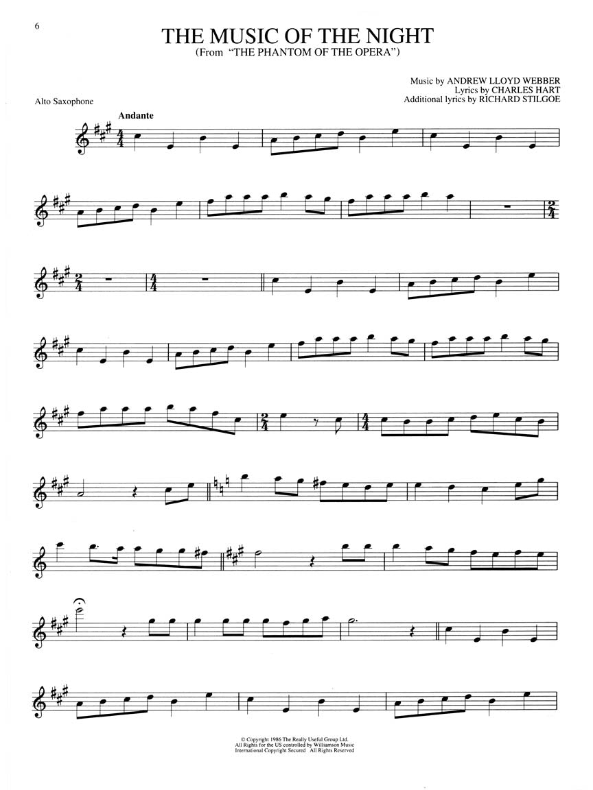 Phantom of the Opera -nuottikirja alttosaksofonille sisältää Andrew Lloyd Webberin legendaarisen musikaalin unohtumattomat melodiat. Kirja on suunnattu harrastajille ja edistyneille soittajille, ja se sisältää soolosovituksia, jotka sopivat sekä itsenäiseen harjoitteluun että esiintymisiin. Helposti luettavat nuotit auttavat kehittämään ilmaisua ja tekniikkaa, tehden tästä erinomaisen valinnan musikaalimusiikin ystäville.