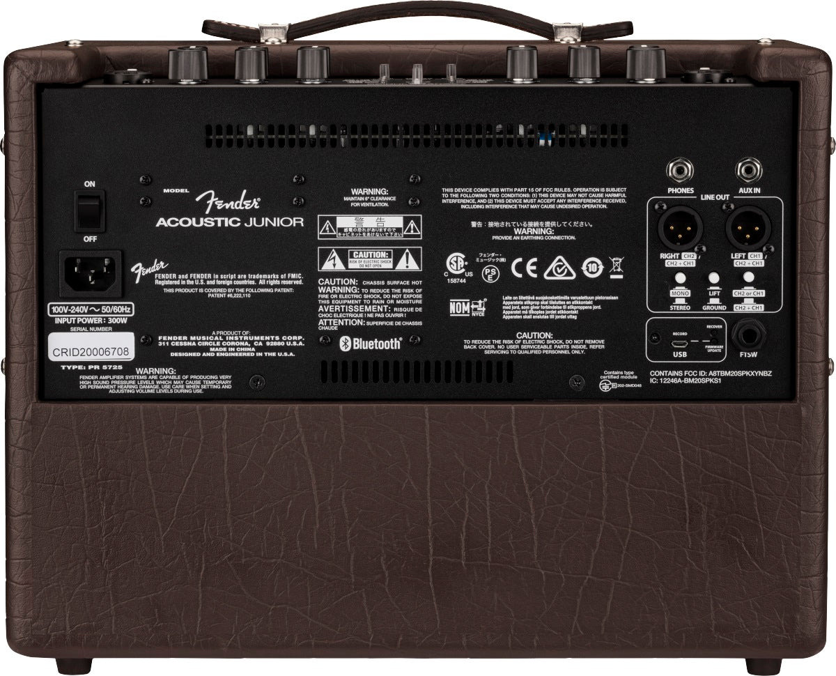 Fender Acoustic Junior -vahvistin tarjoaa 100 watin tehon ja kristallinkirkkaan äänen akustisen soiton täydelliseksi kumppaniksi. Kompakti ja kevyt (alle 7 kg) vahvistin on varustettu kahdella kanavalla, joista kumpikin sisältää erilliset säätimet äänen viimeistelyyn, mukaan lukien kolmialueinen EQ, efektit ja vaiheenkääntö. 8" kaiutin yhdistettynä Hi-Fi tweeteriin tuottaa eloisan ja luonnollisen äänen, joka täyttää tilan selkeydellään.